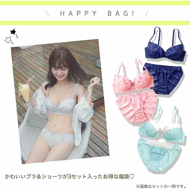 スタッフ厳選の可愛いブラ&ショーツが3セット入ったお得な福袋♪