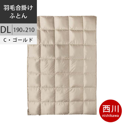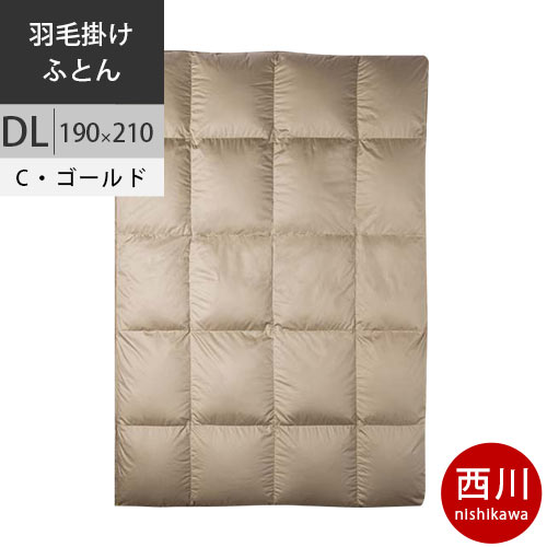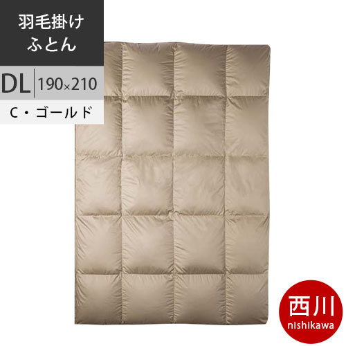 【26日12時〜28日迄P5倍】西川 西川プレミアム 羽毛掛けふとん 羽毛布団 (DL ダブルロング) 190×210cm 1.7kg 日本製 NP7056 配色CG シャンパンゴールド 【完全お取り寄せの為、キャンセル不可、代引不可、後払い不可】 【2020AW】
