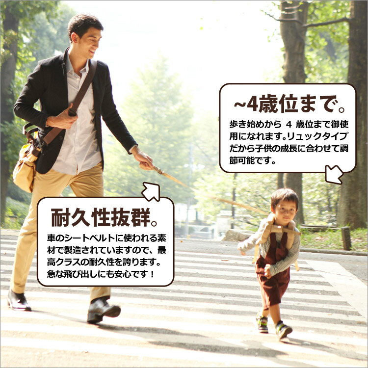 荷物をたくさん抱えてたり、妊婦さんだったり、上の子や下の子がいたり… パパとママにもすぐに追いかけられない事情があるんです! "子供の欲求&親の不安"一気に解決してみませんか? 子供と身長差があるから、手をつなぎながら腰をちょっとかがめ気味に歩き続けるのは結構つらい。