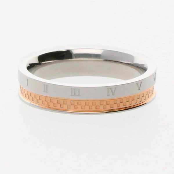ローマ数字とブロックチェックが指先をオシャレに彩るステンレスリング。