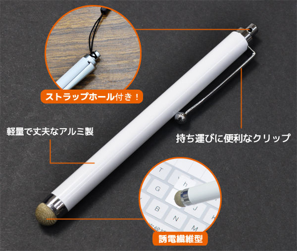 <スマホケース>便利なストラップホール付き! スマートフォン&タブレットPC用タッチペン(ホワイト) 1点【tp023wh】